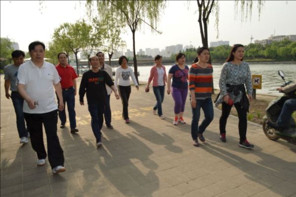 4月28日下午4:00,斜阳浓浓,微风徐徐,在华体会平台-华体会(中国)一站式服务平台 领导秦广远、付立文等同志的带领下,近40名员工在楼下准时集合,排成整齐的健步走队伍,挥舞着“郑州市建设投资集团”的旗帜,精神抖擞地沿着如意湖畔阔步前行,在运动中体验健康和快乐。