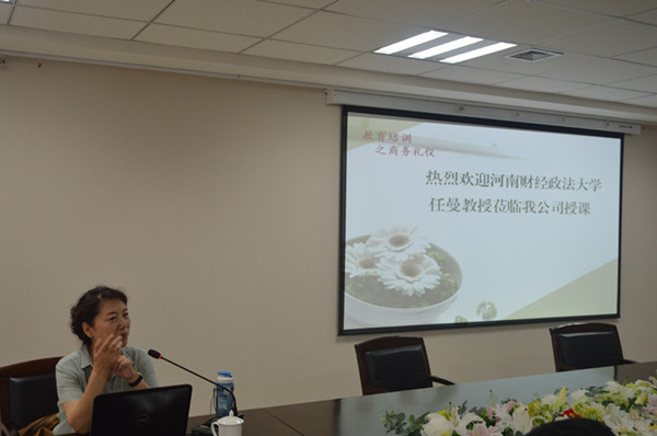 邀请河南财经政法大学教授任曼女士开展了商务礼仪培训活动。培训会由监事会主席付立文同志主持,华体会平台-华体会(中国)一站式服务平台